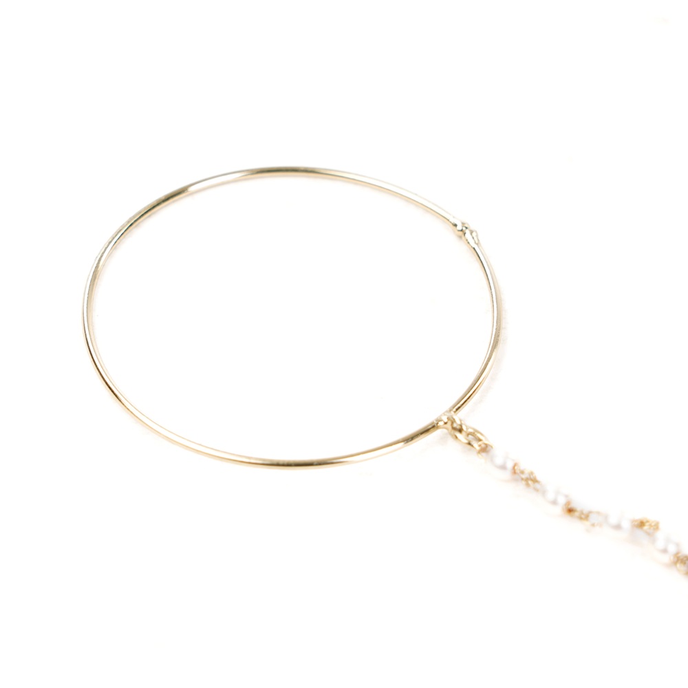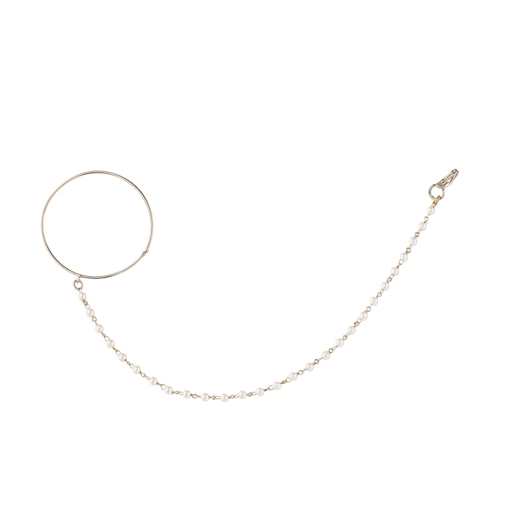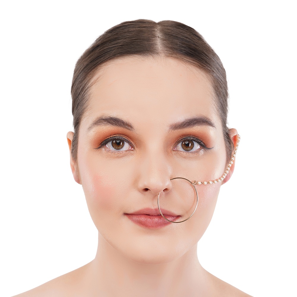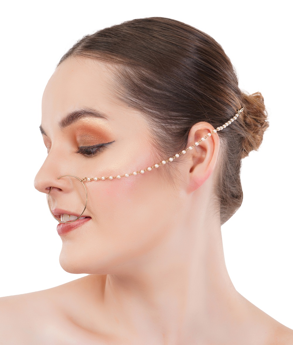 Antique gold nose ring with pearl chain. Thin ring makes it easier to wear for longer duration.